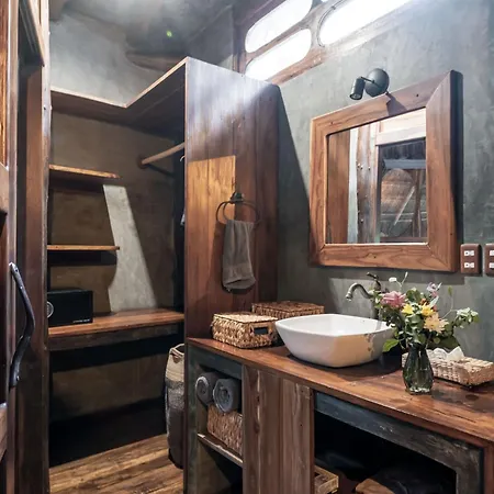 Casa Moksha Hotell Tulum erbjuder spabehandlingar, picknickområde och spatjänster. Det är beläget ungefär 6 minuter till fots från Cenote Tulum. Detta 4-stjärniga hotell erbjuder 7 rum och bekvämligheter som restaurang.